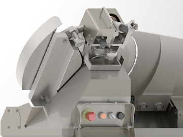 Blade cover with Interlock. Machine never starts without Cover. Interlock grinder unit and Extra Emergency stop on the unit eliminates the accidental start.